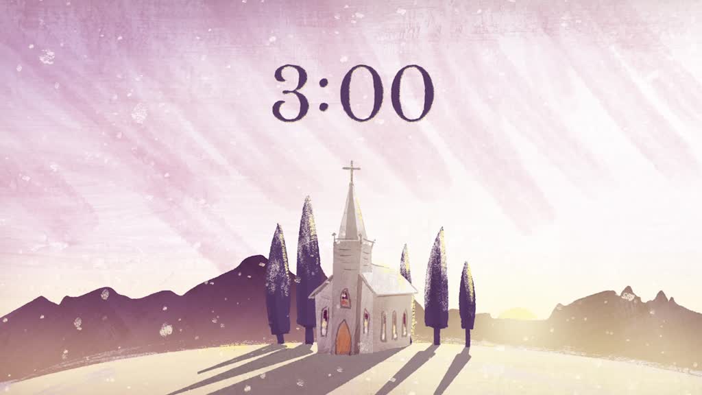 Christmas Dawn Countdown 3 Minutes is a love winter themed timer showing a tiny classic church building nested on in a lovely winter landscape and lit from behind by the rising sunshine as snow falls gently on the scene. This lovely timer is great for letting people know a service or event will be starting shortly, especially during the winter and Christmas season.