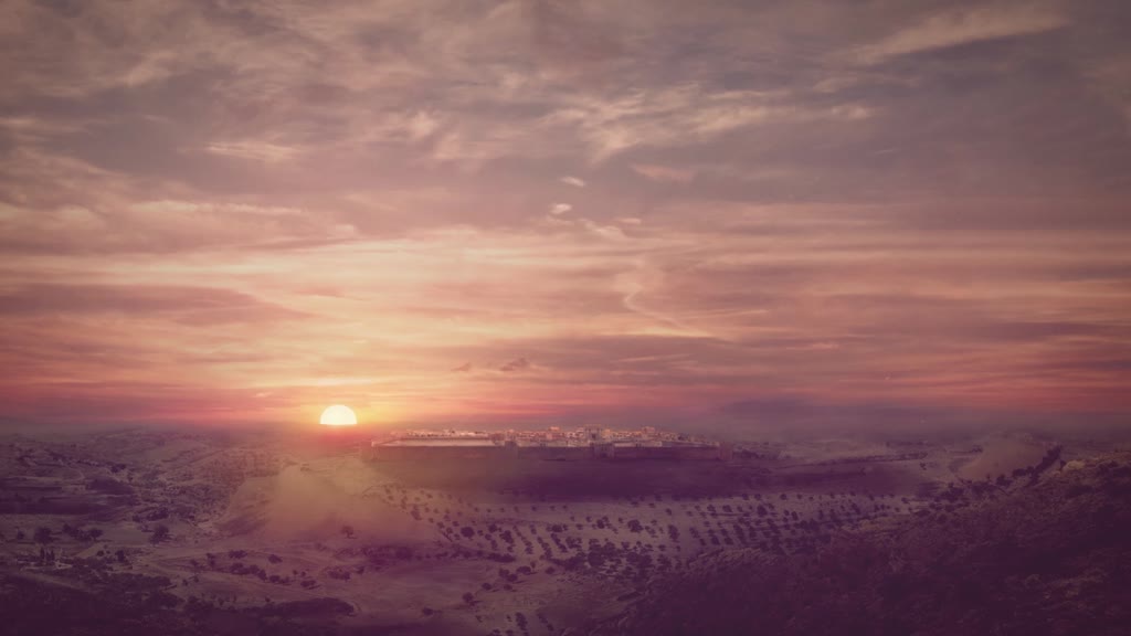 Jerusalem Sunset Content Motion shows the glorious setting sun lowering below the horizon of the Holy Land as clouds move slowly in the sky above. This set is an amazing reminder of God's glory and is great for worship backgrounds.