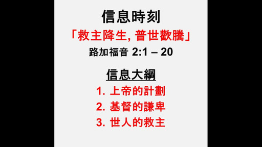 20241225 救主降生,普世歡騰 | 路 2:1-20| 粵語堂