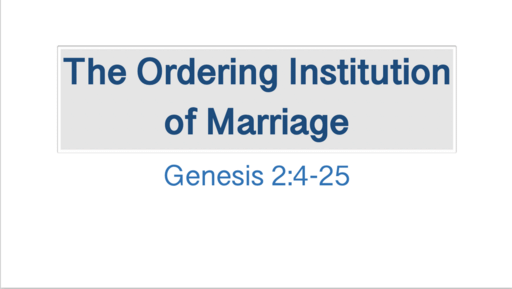 Genesis 2:4-25 - The Ordering Institution of Marriage