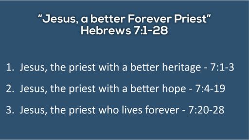 Hebrews 8:1-13 - "Jesus, A High Priest of a Better Covenant"