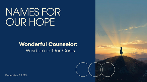 Join us for a Christmas series exploring the stunning titles given to the promised child in Isaiah 9: Wonderful Counselor, Almighty God, Everlasting Father, Prince of Peace. In a world of anxiety, confusion, and exhausted plans, these names speak directly to our deepest needs for wisdom, strength, security, and peace. Join us—and bring a friend—as we discover how Jesus embodies each of these names and why His coming still offers real hope for real people right now.