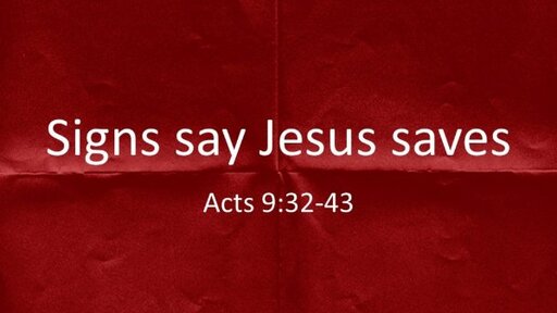 PM Sunday 08 March 2026 "Signs Say Jesus Saves" (Acts 9:32-43)