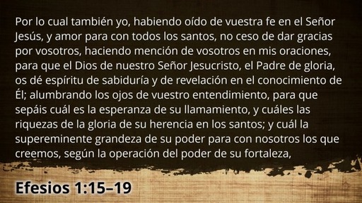 Por lo cual también yo, habiendo oído de vuestra fe en el Señor Jesús, y amor para con todos los santos, no ceso de dar gracias por vosotros, haciendo mención de vosotros en mis oraciones, para que el Dios de nuestro Señor Jesucristo, el Padre de gloria, os dé espíritu de sabiduría y de revelación en el conocimiento de Él; alumbrando los ojos de vuestro entendimiento, para que sepáis cuál es la esperanza de su llamamiento, y cuáles las riquezas de la gloria de su herencia en los santos; y cuál la supereminente grandeza de su poder para con nosotros los que creemos, según la operación del poder de su fortaleza,